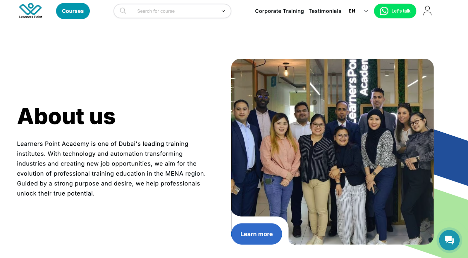 Learners Point Academy, based in Dubai, is a professional training institute that supports both individuals and organisations with practical, career-focused learning. Having trained over 100,000 learners across the GCC, it is known for offering recognised certifications, industry-relevant courses, and flexible training options tailored to learner and business needs.